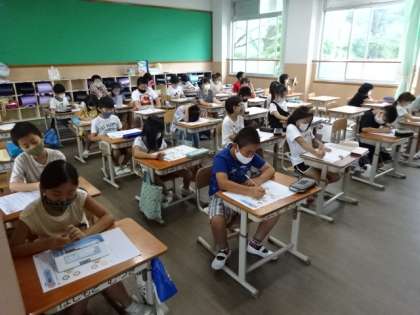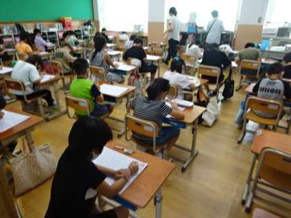 3年生は漢字のテストに取り組んでいました。夏休み中に復習した成果を発揮すべく,集中して取り組んでいました。