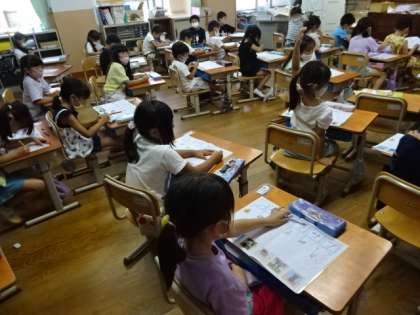 国語ではカタカナの学習に入りました。算数では10を超える20までの数についての学習を始めました。1学期よりも学習内容が少しレベルアップしましたが,意欲的に学習に取り組んでいます。