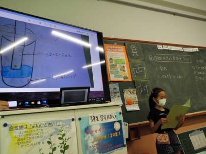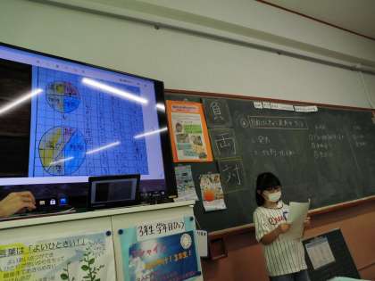 夏休みの自由研究の発表会をしました。身近な疑問を解決しようと生き物を観察したり,実験したりして探求することができていました。その発表を聞いて,質問や感想を交流しました。