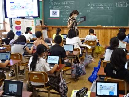 社会は災害についての学習です。気象庁のホームページを検索し,災害が起こった時の動きを確かめていました。