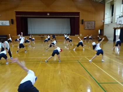 体育は体育学習発表会の踊りに向けての動きを学んでいました。腰を落として大きな動きを心がけていました。