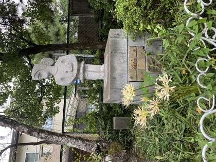 白いひがんばなも,校門のそばの石像の周りに咲いていました!