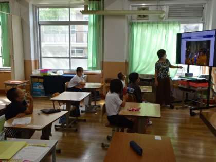 高学年の子どもたちは,来月の宿泊学習に向けて,写真を見てイメージを膨らませていました。