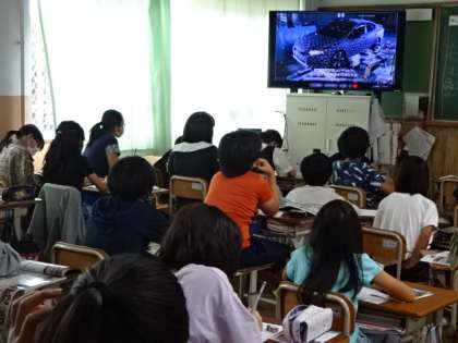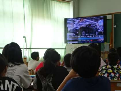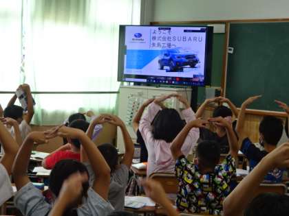 5年生はオンラインで群馬県の自動車工場とつなぎ,工場見学をさせてもらいました。事前に送っていただいた資料を見ながら,自動車ができていく様子を確認しました。