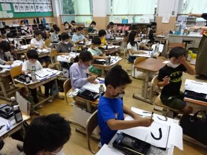 3年生は毛筆学習で初めて「ひらがな」や「小筆」に挑戦しました。