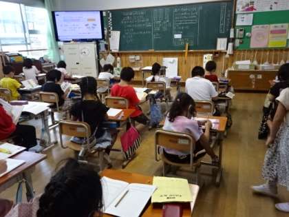 道徳は,「自分のいいところ」について,教材文を基に考えていました。