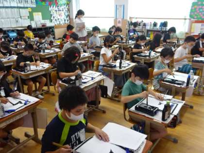 4年生は未来創造学習(総合的な学習の時間)や書写でした。