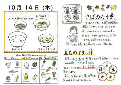 ※10月より,和献立には牛乳がつかないので,お茶をもってきてください。
