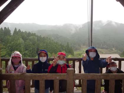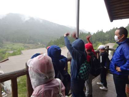 見晴らしのいい展望台に上り,みんなで「ヤッホー」と叫んでいました。2学年合同の5人で行けているのがうれしいようで,みんな楽しんでいます♪