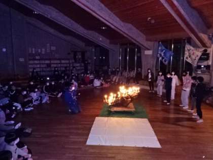 火の神から火をもらった火の子がキャンドルに点火をし,キャンドルファイヤーが始まりました。