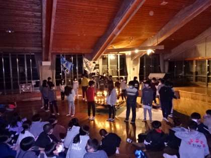 6年のキャンドルファイヤーの中盤はクラスごとの出し物です。歌を歌ったり,寸劇をしたり,またあるあるを言ったりとそれぞれのクラスが工夫を凝らした出し物で楽しみました。