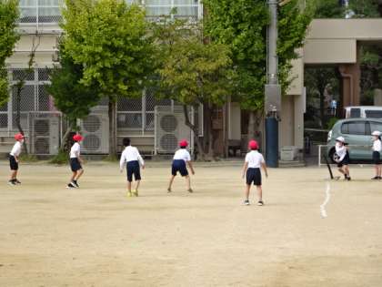 体育ではハンドベースボールのルールにも少しずつ慣れてきて,チームワークもよくなってきました。