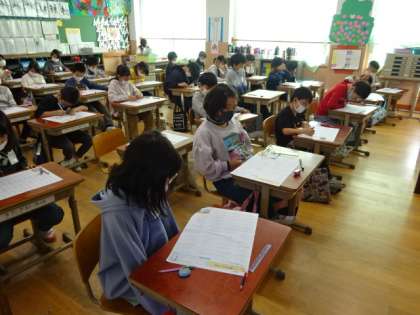 国語は漢字のテストでした。最後まであきらめずに取り組んでいました。