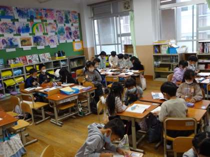 国語では「じどうしゃくらべ」の学習で,お気に入りの自動車を友だちと話していました。