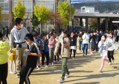 3時間目に,火事を想定した避難訓練を行いました。子どもたちは先生の指示をよく聞き,素早く避難できていたと思います。