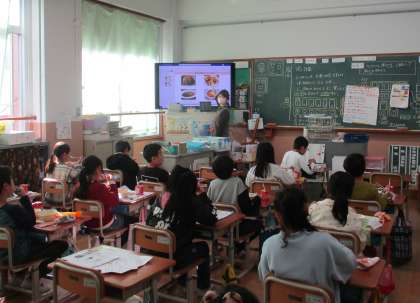 今日の給食時間は,給食に登場する世界の料理を紹介しました。給食では,日本の料理以外にも,いろいろな国の料理が登場します。