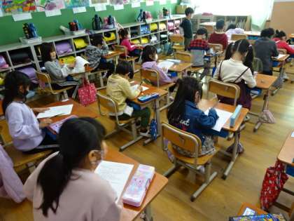 1年生は国語とアンケートに取り組んでいました。