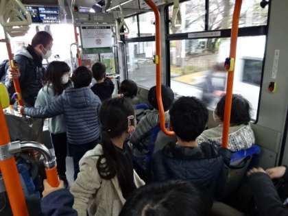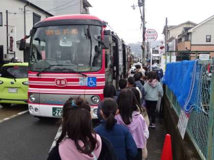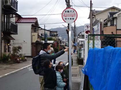 西今屋敷から山科駅まで乗車しましたが,車内はお客でギューギュー。車内やバス停,山科駅の様子などを観察し,多くの発見があったようです。