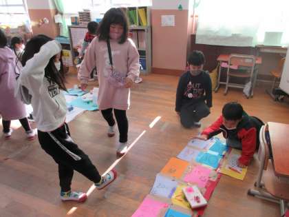 1年生は今回の遊びの経験を,来年の生活科でのおもちゃ作りの学習に少しでも生かしてくれたらうれしいなと思います。