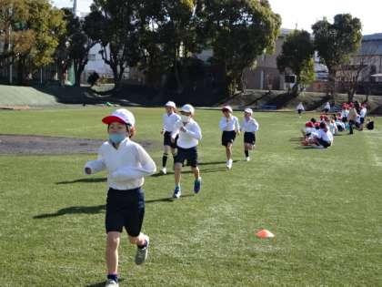 3年生は,朝一番の寒い中でしたが,グラウンド4周(1200m)を一生懸命走っていました。