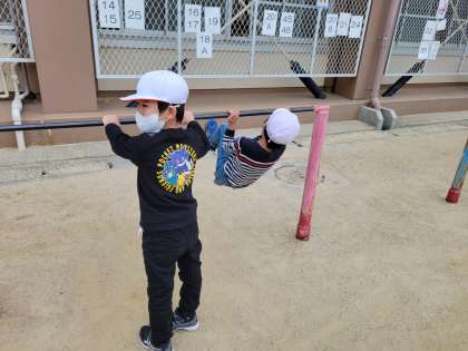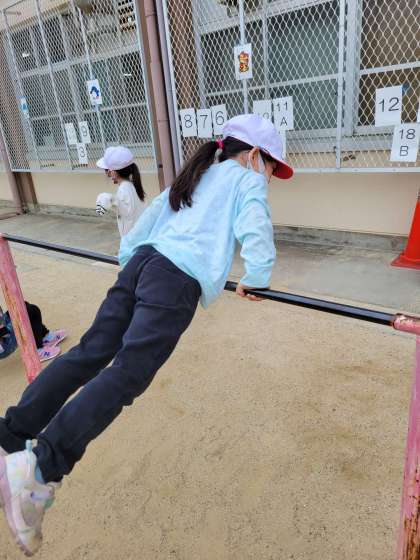 鉄棒遊びをしました。