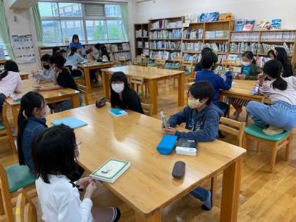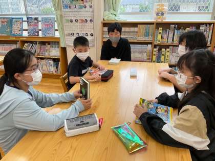 本を選んですぐに紹介の言葉を考え,友だちに伝える姿に