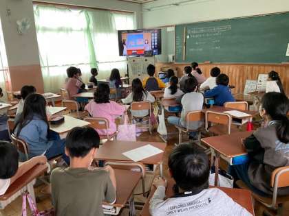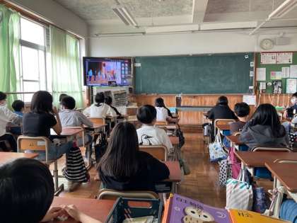 教室にいるみんなも集中してテレビ画面に注目し,出し物が終わったあとには拍手する姿が見られました。