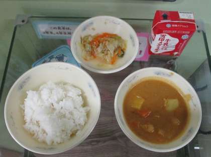 チキンカレーは,やはり子どもたちから大人気!朝から給食を楽しみにしている子が多くいました。