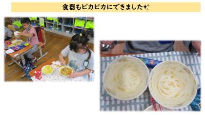 1年生の教室をのぞいてみると,カレーの食器までピカピカにして食べている子がいました♪