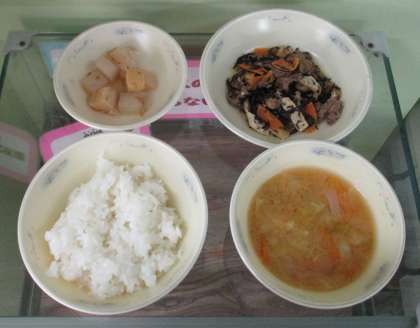 明日の給食は「高野どうふのそぼろ煮」です。お楽しみに!