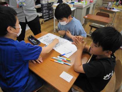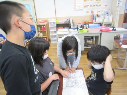たいよう学級の動物園への遠足では,グループに分かれて子どもたちだけで見たい動物を見て回る予定です。この日は,どの動物を見たいか意見を集めて,どんなコースで回るのか計画を立てました。,見たい動物を伝え,友だちの意見も聞きながら相談することができました。