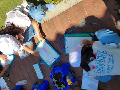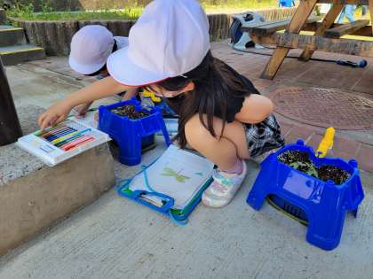 と,あさがおの種まきをした日からお世話を頑張っている子どもたち。