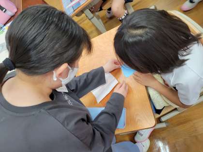 5年生のお兄さん,お姉さんが折り紙を教えてくれました。