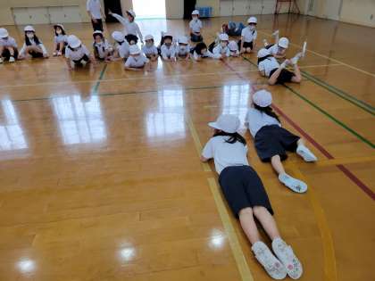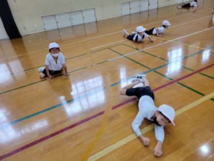 いろいろな動物に変身して体育館を元気いっぱいかけまわりました。
