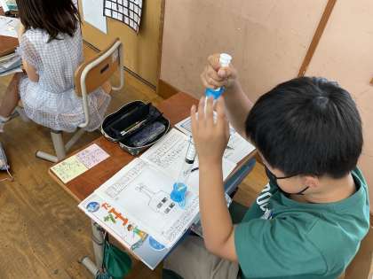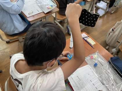 理科の学習で空気は押し縮められるのかという実験をしました。