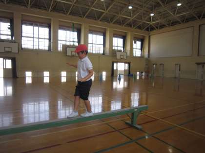 体育でサーキットトレーニングやキャッチボールに取り組んでいます。サーキットでは平均台を渡ったり,マットの上を転がったりしながらコースを回っています。キャッチボールでは,友だちとペアになって練習してます。ボールの扱いが上手になってきました。