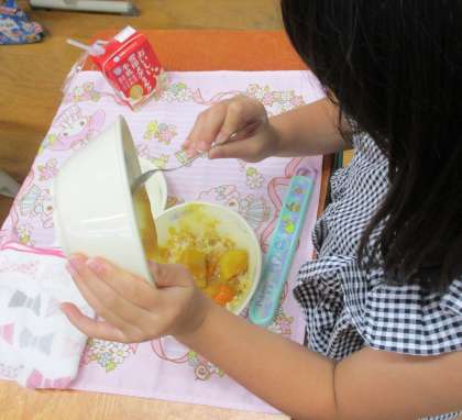 子どもからも教職員からも人気のカレー。朝からとても楽しみにしている子が多くいました。残菜も少なく,もりもり食べてくれていました♪