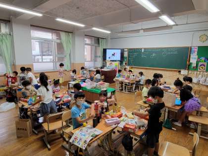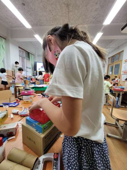 図画工作の学習のために,ご家庭でたくさんの箱や,両面テープなどをご用意していただきありがとうございます。