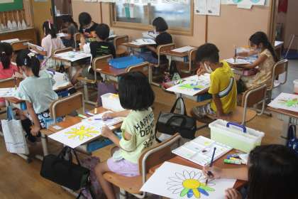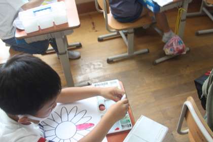 2組でも絵の具の学習をしました。初めて絵の具を使っての学習で子どもたちもとてもワクワクしながら活動をすることができました。