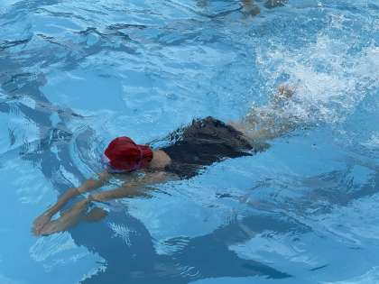 今年度最後の水泳学習を行いました。学習の初めには、顔を水中に沈めることができなかった子どもたちがだるま浮きや水中じゃんけんなどを通して、少しずつ水に慣れていったり、短い距離しか泳ぐことができなかった子どもたちがバタ足でどんどん前へ進めるようになったりするなど、少しの期間で成長した姿を見ることができました。