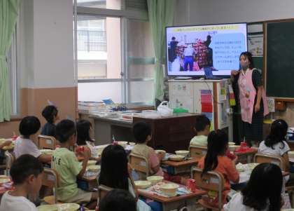 今日の給食時間には、牛乳パックの洗浄方法についてクラスで再度確認しました。今年度より、牛乳パックをリサイクルするために洗浄してから回収することになっています。リサイクル業者の作業の様子を見た子どもたちは、