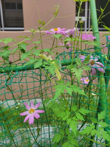 マリーゴールドや、おじぎ草、ほうせんか、風船かずらにコスモス…。
