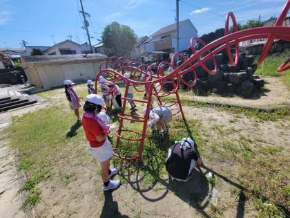 1年生は遊具付近の草抜きを担当しました。