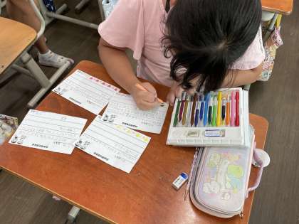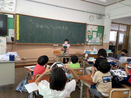 夏休みに子どもたちが一生懸命取り組んだ自由研究や自由工作の発表会を行い、いいところカードを渡し合いました。いろいろな作品の発表にみんな興味津々でした。