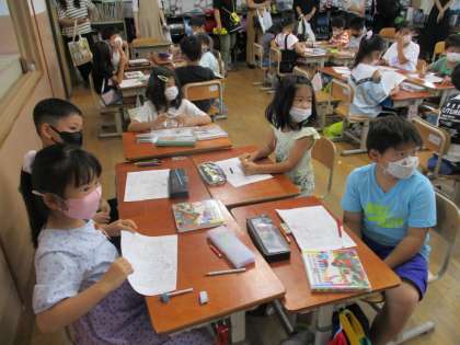 参観日では国語科の「ことばでみちあんない」をしました。友達に正しく道案内するためにどのように伝えたらいいのかを考えて交流しました。