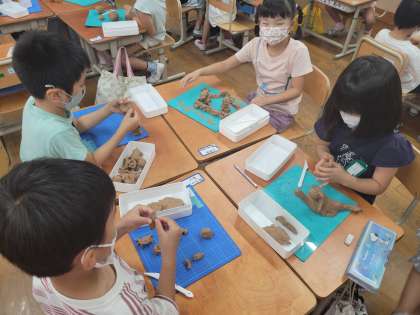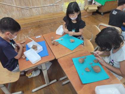 小さな粘土板の上に1人1人の作品の世界が大きく大きく広がっています。