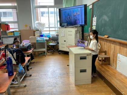 今日の発表者は金曜日に宿題で自主学習ノートに文と絵をかいてきてくれたので、ロイロノートで写真を撮り、みんなに見えるようにして発表しました。