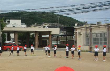 今日は外でクラスの円をつくったり、大きな学年の円をつくったりしました。本番のダンスの時にきれいな円ができるようにしていけたらなと思います。