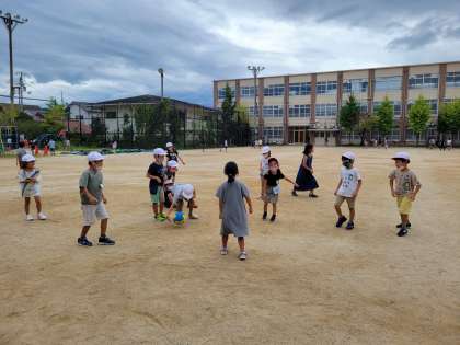 ころがしドッジボールをして遊びました。