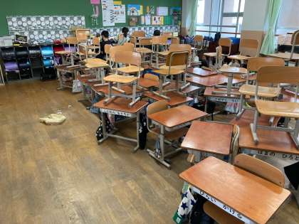 不審者の場所から避難経路を確認して不審者が現れたときには、自分の命を守るためにバリケードを自分たちで作ったり、逃げる行動をとれるように工夫したりするなど真剣に避難訓練に取り組みました。